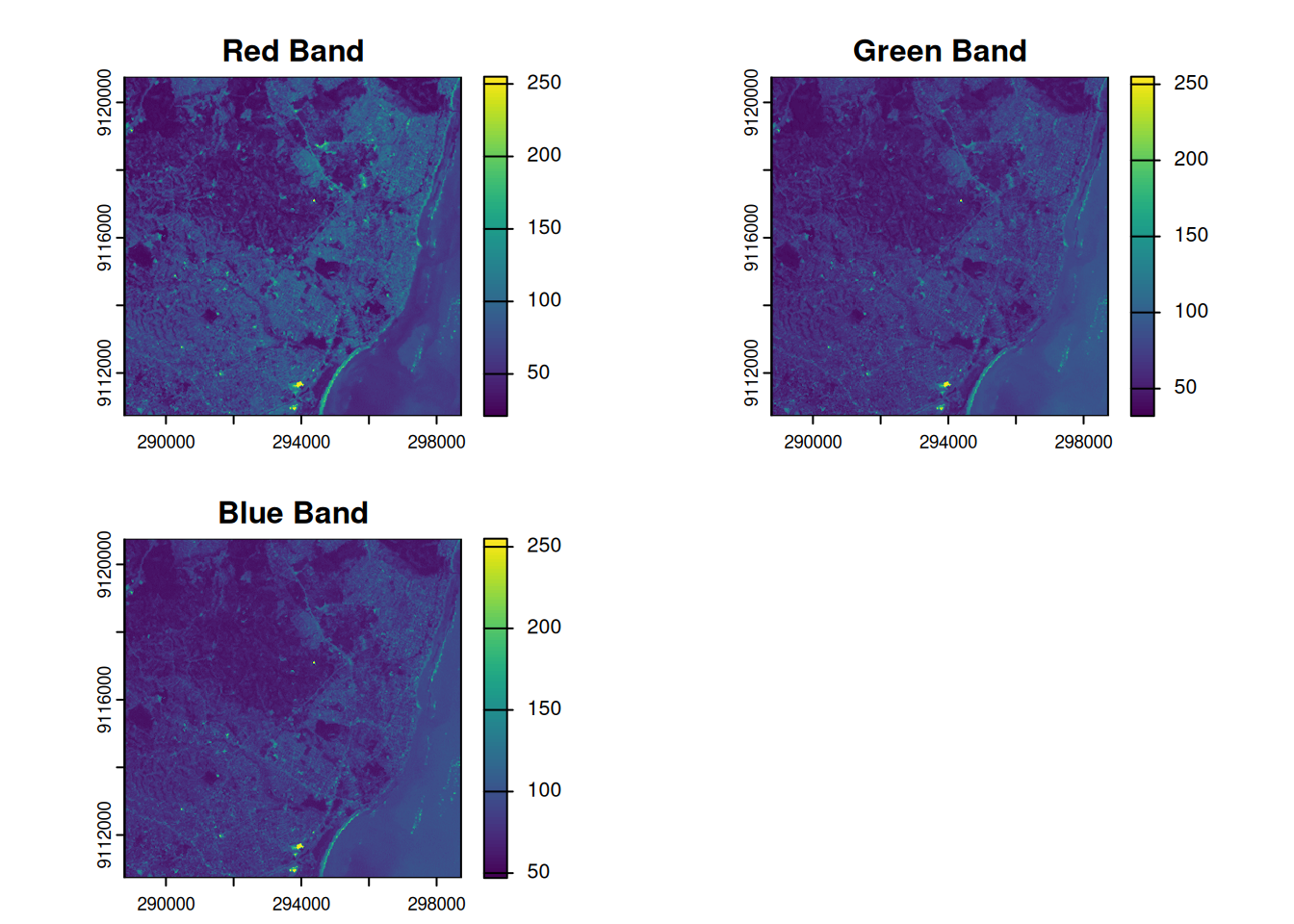 - In this case, the data is stored in a 3 dimensional array (where band is the 3rd-dimension)