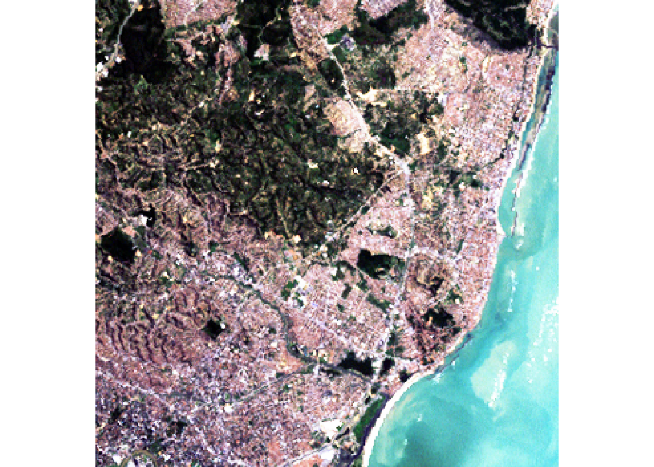 - Different false color combinations highlight different features (water, urban areas, etc.)