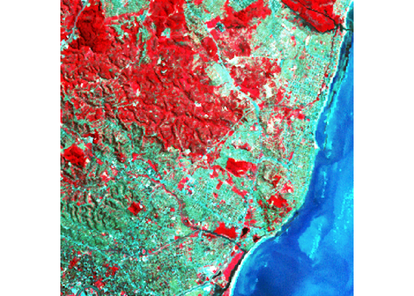- NIR false color is very common - vegetation appears red because it reflects strongly in NIR